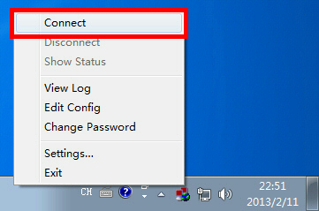 右击 OpenVPN GUI 图标,并点击 "Connect"